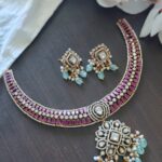 Necklaces in Indian jewelry are timeless adornments, crafted with intricate designs, precious metals, and gemstones. They symbolize elegance and tradition, enhancing the beauty of ethnic and bridal attire.
