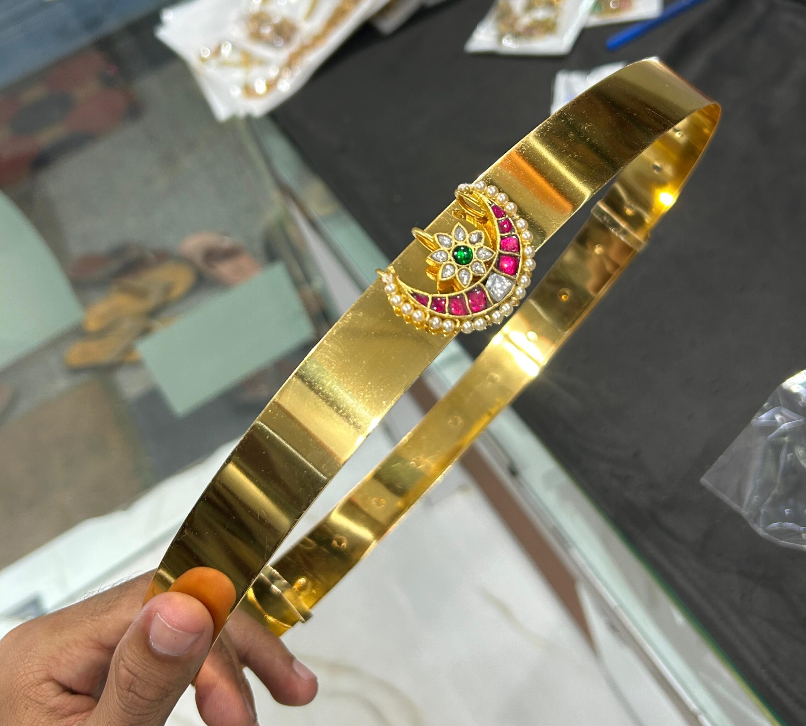 Elevate your ethnic look with this beautifully designed Half Moon Pendant Hipbelt. Featuring a stunning crescent-shaped pendant, intricate detailing, and premium gold-look polish, this hipbelt adds a regal touch to sarees, bridal wear, and festive outfits. Its adjustable fit and elegant craftsmanship make it a must-have accessory for weddings and special occasions.